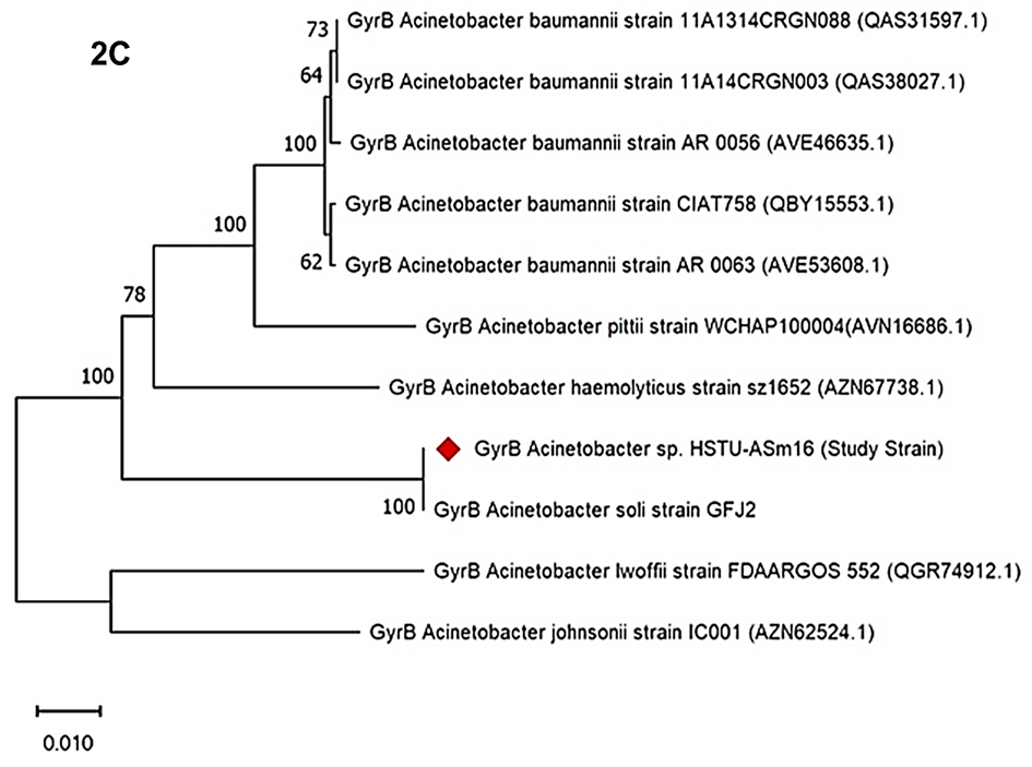 Figure 2C. gyrB gene phylogenetic tree of the strain Acinetobacter sp. HSTU-Asm16.