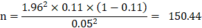 The minimum sample size was calculated using the single population proportion formula: